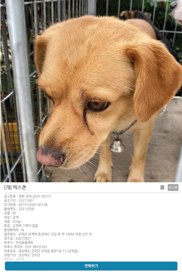 [Ministry of Agriculture, Food and Rural Affairs, Agriculture, Forestry and Livestock Quarantine Headquarters_Animal protection management system abandoned animal inquiry service] is used.