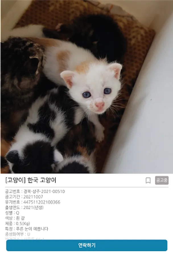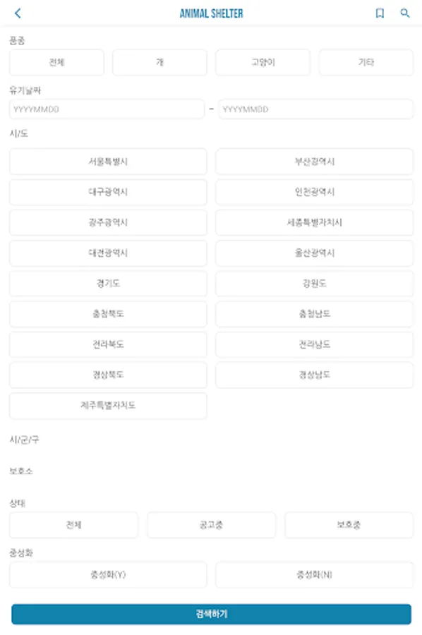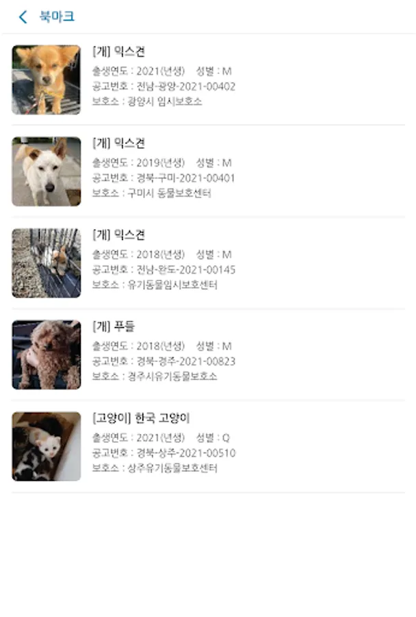 - You can inquire about breed, date, region, status, and neutering for animal friends.