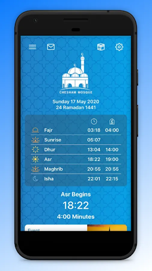 • Check Salah & Jammat times and receive notifications for the daily prayers at Chesham Mosque with Hijri date enabled.