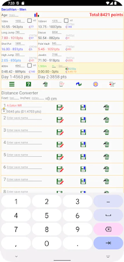 -Feet/inches to m/cm converter within score calculator.