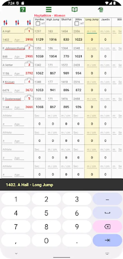 -Calculator designed for fast results entry - decimal point not required and next event automatically selected after result entered. Results are retained automatically when you exit the calculator.
