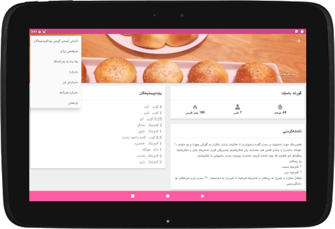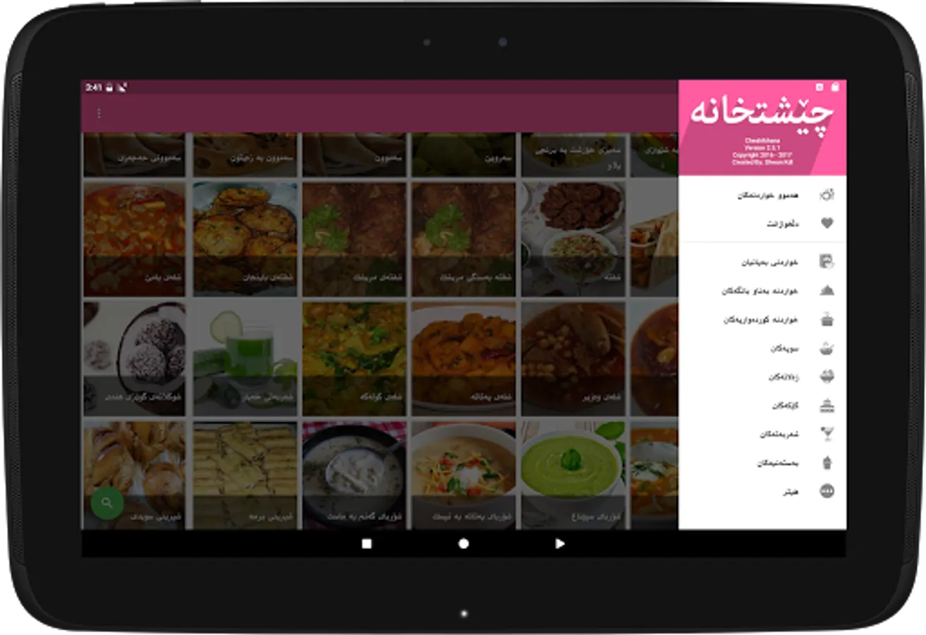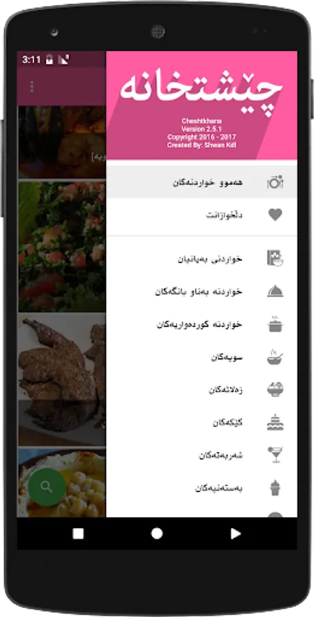 كاتێك تۆ هەر خواردنێك دەكەیتەوە وێنەیەكی خواردنەكە دەبینی وە هەنێك لە خواردنەكان كورتە باسێكیان لەگەڵدایە.