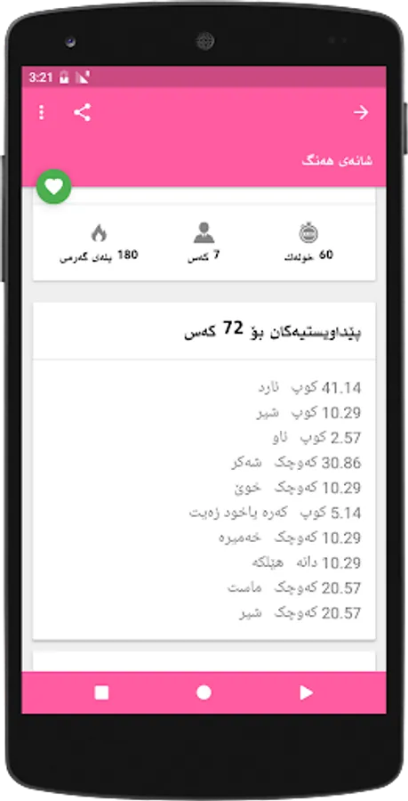 دوگمەی دڵخوازان ئەگەر گرتەت كرد ئەوە راستەوخۆ ئەم خواردنە دەچێتە لیستی دڵخوازانت, كە دواتر بە ئاسانتر دەیدۆزیەوە لە لیستی بەشی دڵخوازانت.