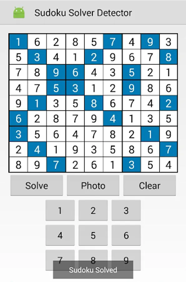 This app can solve sudokus inserted either by hand or by scanning a photo. It will let you modify the scanned sudoku and will show the solution if one exist. It is fast, light and accurate! (Please use good photos)
