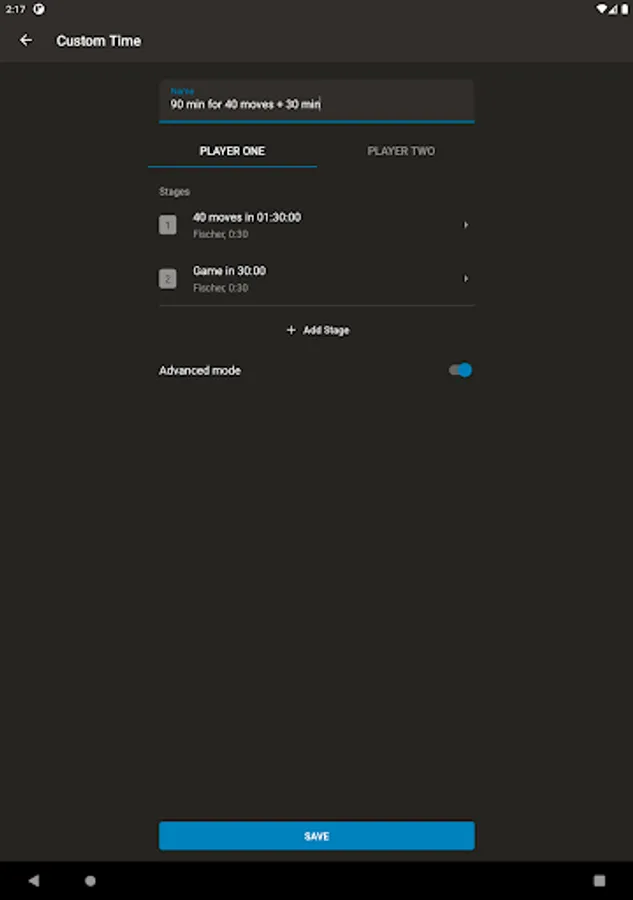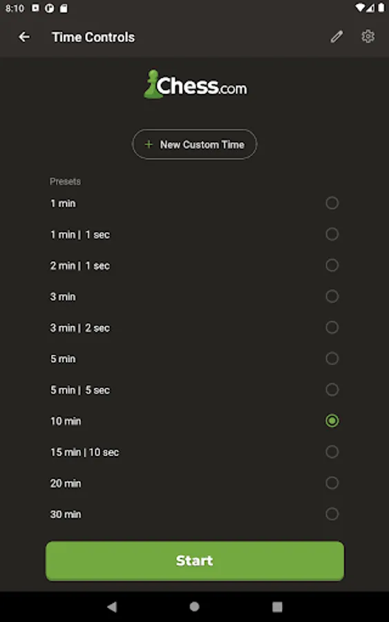 - Time controls include base minutes per player and optional per-move delays or bonus time. The app supports both Fischer and Bronstein increments, as well as simple delays. The duration is up to you!