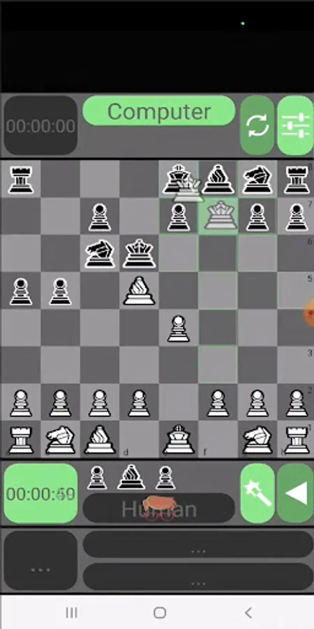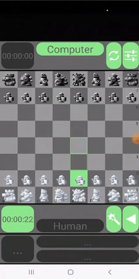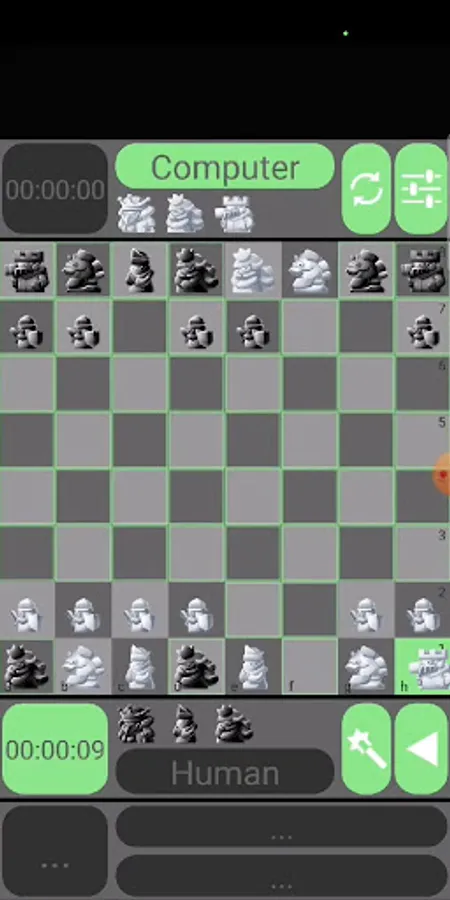 9. Select/deselect the Human/Computer buttons for both sides according to which side you want to play and whether you play against a computer or another person.