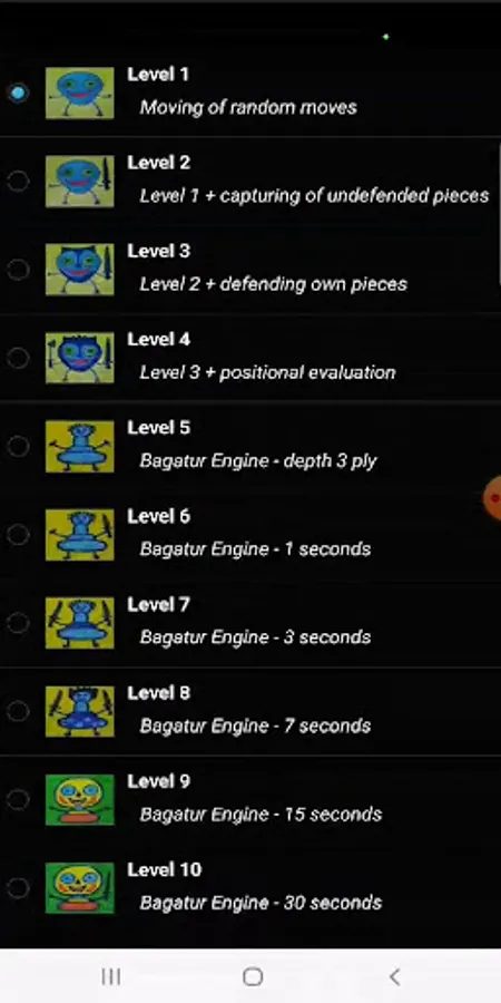 Also you could play as 1 player and then your opponent will be the open source chess engine Bagatur. When Bagatur plays, it has an increasing strength level, starting from level 1.