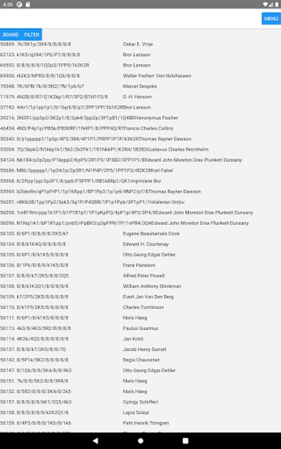 This app solves this problem by collecting over 60,000 endgames and providing an easy and simple interface for the user to play endgames. The user can try to solve the puzzle first and then verify the solution with the computer. Or the user can study the solution provided by the computer. With time, the user can improve his/her chess skills quickly.