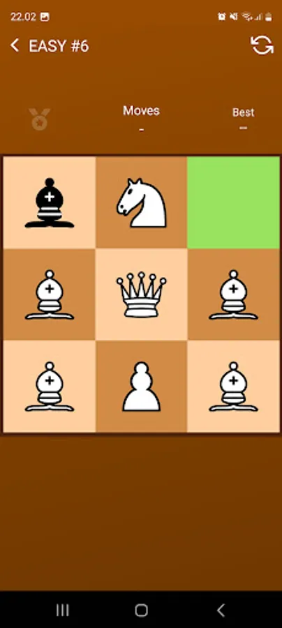 Navigate the Black Piece to Victory: In this challenging puzzle game, players must guide a black chess piece across a board filled with white pieces to reach the coveted green square.