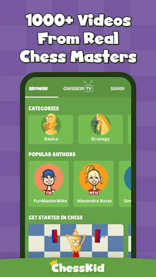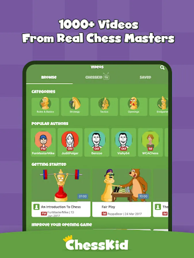 - Improve your game with amazing, kid-friendly chess coaching videos on rules and basics, strategy, chess tactics, openings, endgames and much more.