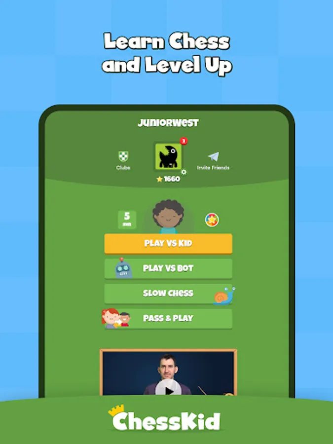ChessKid is the best app for kids who strive to get better at chess. With our app, mastering chess will never be boring. Our funny cartoon characters serve as chess trainers and help you become a chess pro. Join the ChessKid family today!