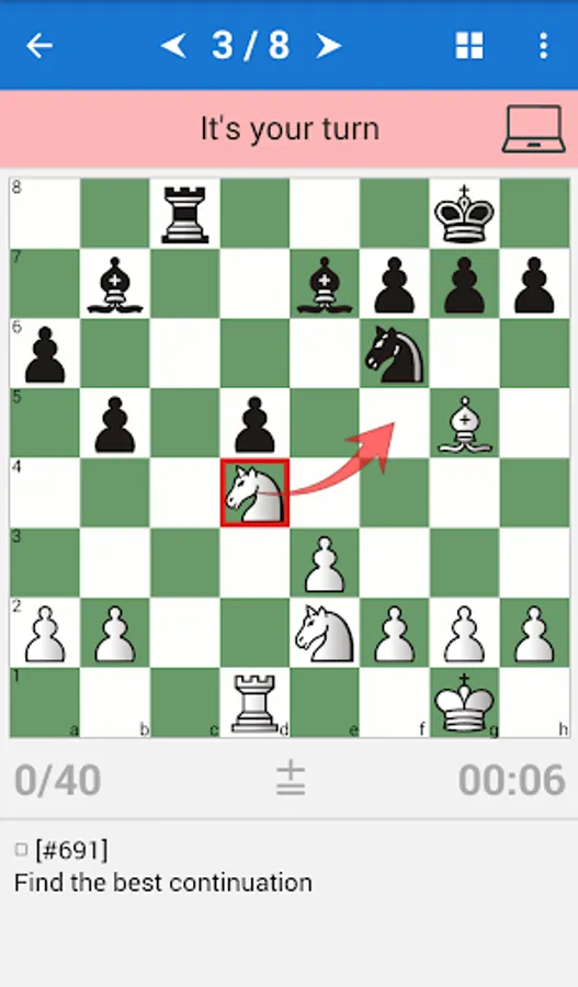 ♔ You can play out any position of the tasks against the computer