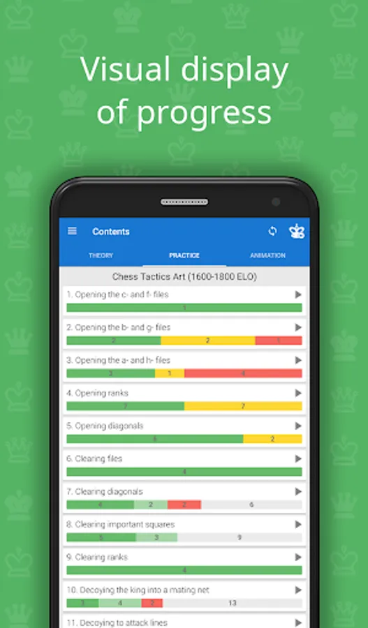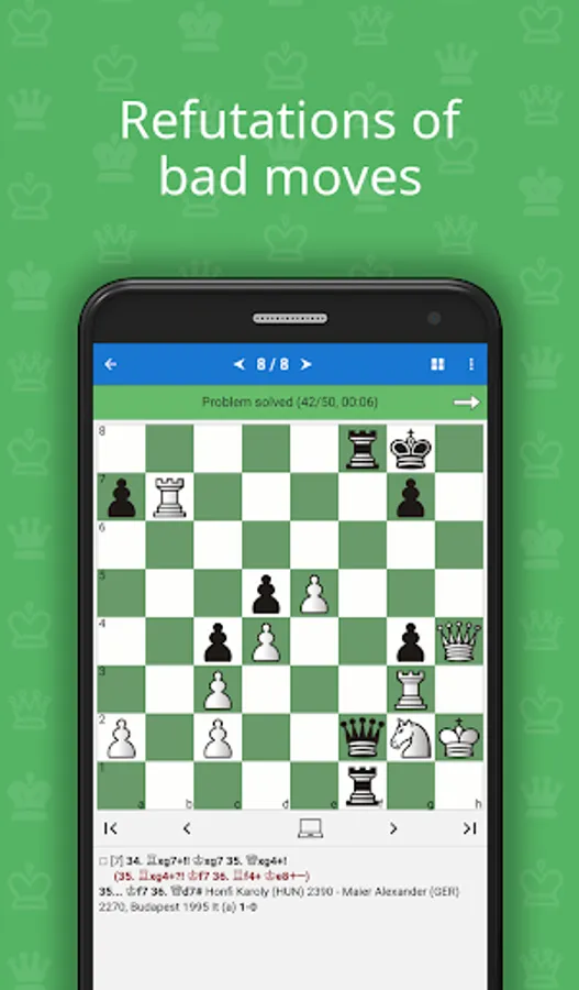 ♔ You can link the app to a free Chess King account and solve one course from several devices on Android, iOS and Web at the same time