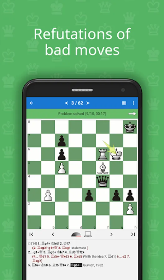 ♔ You can link the app to a free Chess King account and solve one course from several devices on Android, iOS and Web at the same time