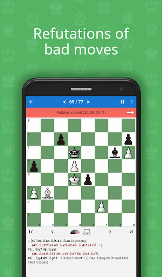 ♔ You can link the app to a free Chess King account and solve one course from several devices on Android, iOS and Web at the same time