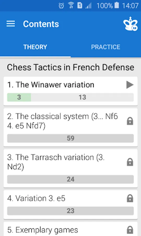 ♔ You can link the app to a free Chess King account and solve one course from several devices on Android, iOS and Web at the same time