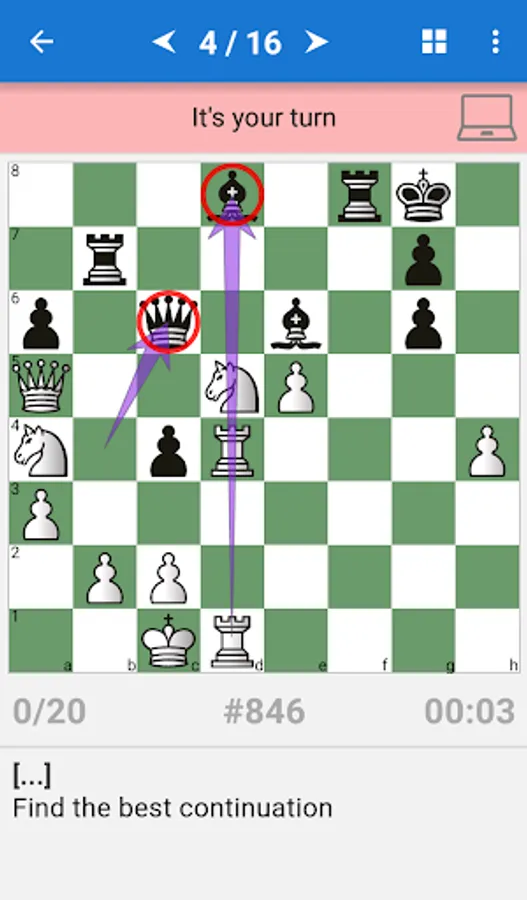 ♔ You can link the app to a free Chess King account and solve one course from several devices on Android, iOS and Web at the same time