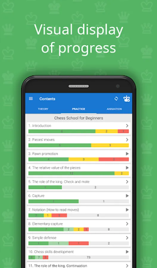 ♔ You can link the app to a free Chess King account and solve one course from several devices on Android, iOS and Web at the same time