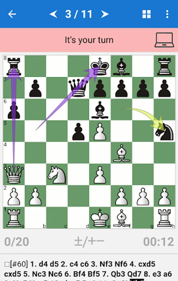♔ You can link the app to a free Chess King account and solve one course from several devices on Android, iOS and Web at the same time