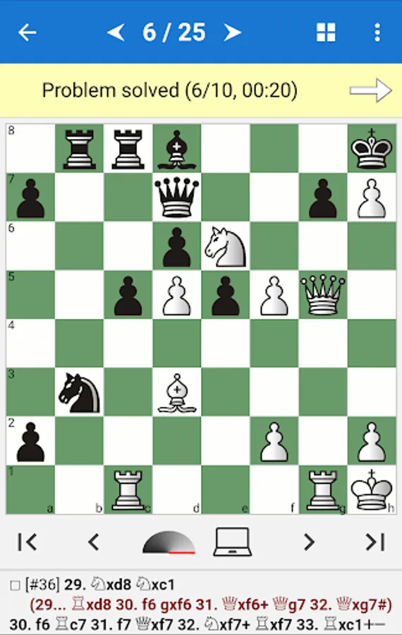 ♔ You can link the app to a free Chess King account and solve one course from several devices on Android, iOS and Web at the same time
