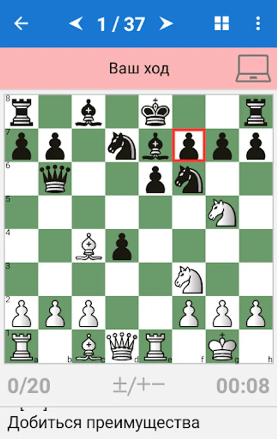 ♔ You can link the app to a free Chess King account and solve one course from several devices on Android, iOS and Web at the same time