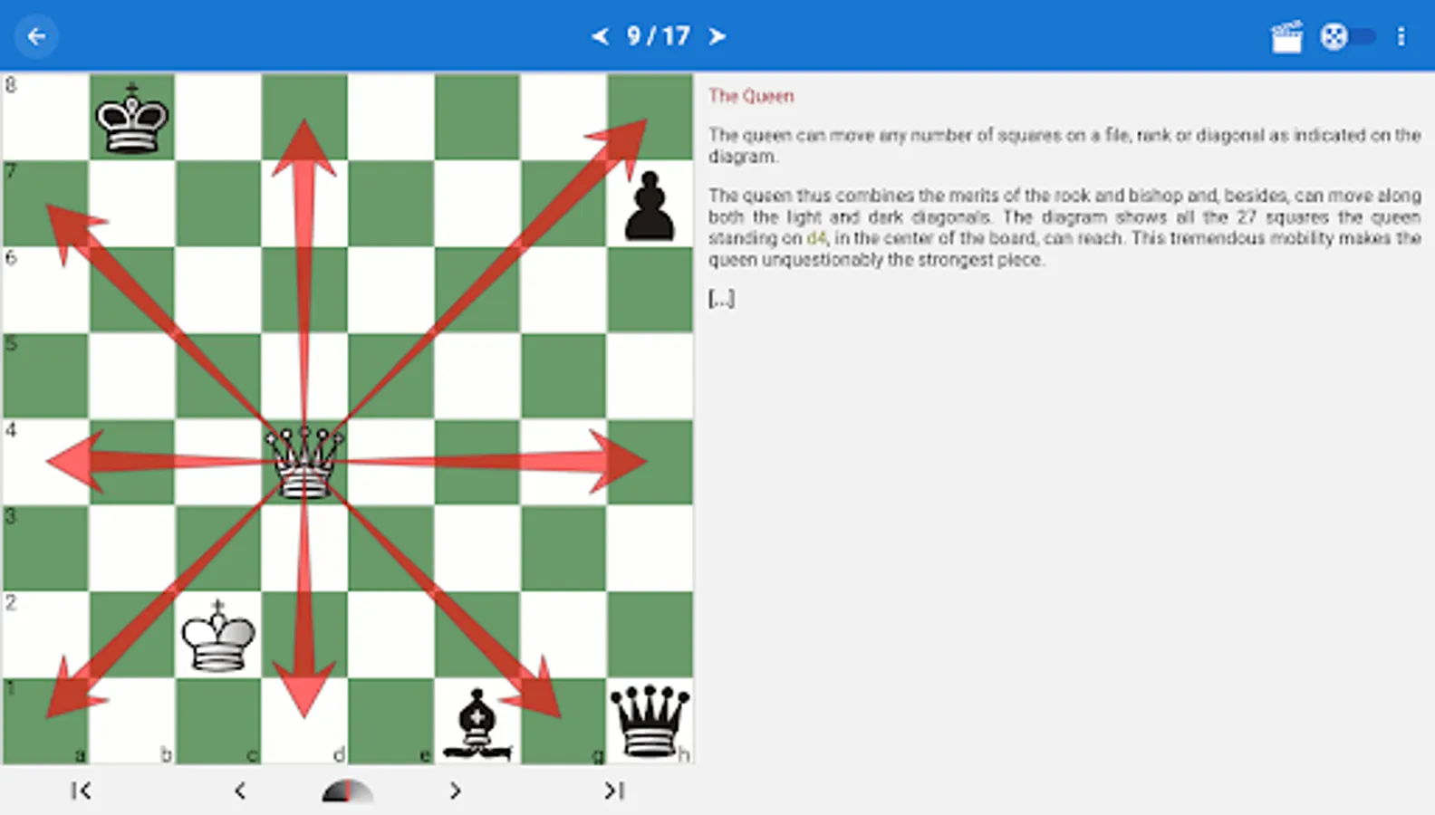Some courses contain a theoretical section, which explains the methods of the game in a certain stage of the game, based on actual examples. The theory is presented in an interactive way, which means you can not only read the text of the lessons, but also to make moves on the board and work out unclear moves on the board.
