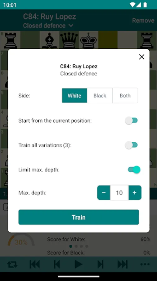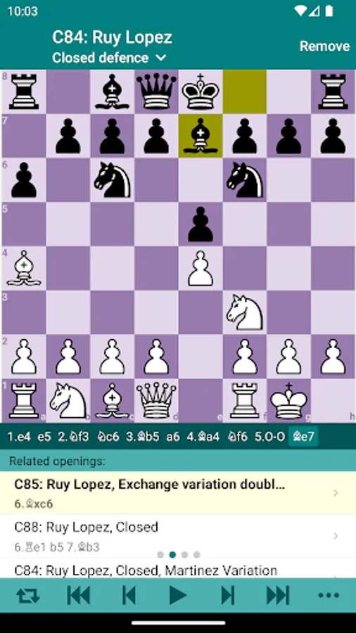 A simple and efficient method to memorize variations of openings in your repertoire. You can train either white’s moves or black’s moves only or both. Optionally, you can train all variations at once. The trainer chooses opponent’s moves randomly from your opening repertoire. Chess Opener tracks your progress and shows your stats.
