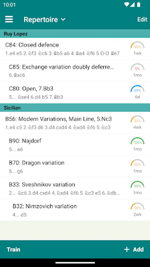 Add your favorite opening lines to your repertoire using the chess opening explorer. You can always edit the names of your openings and organize them in your repertoire.