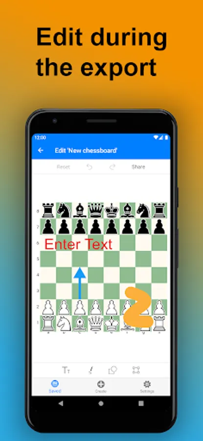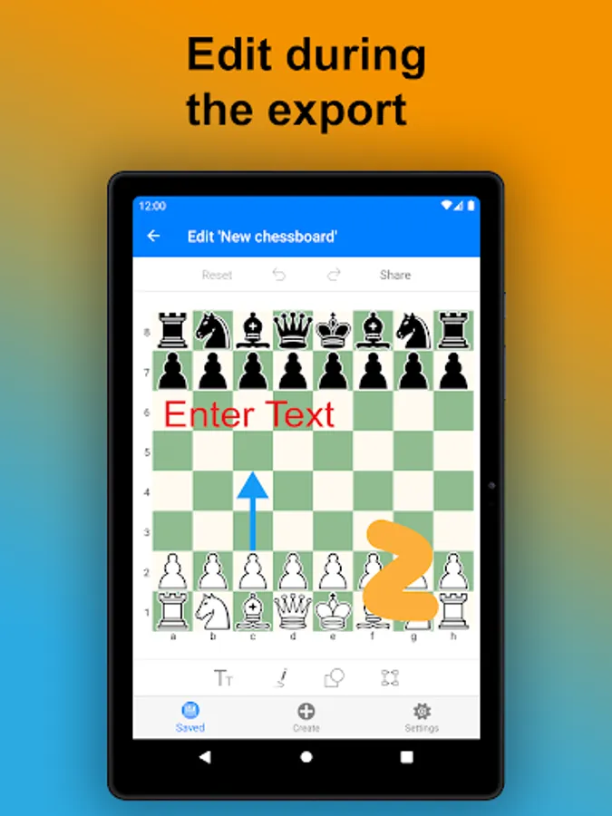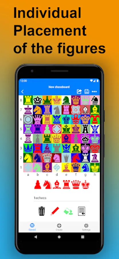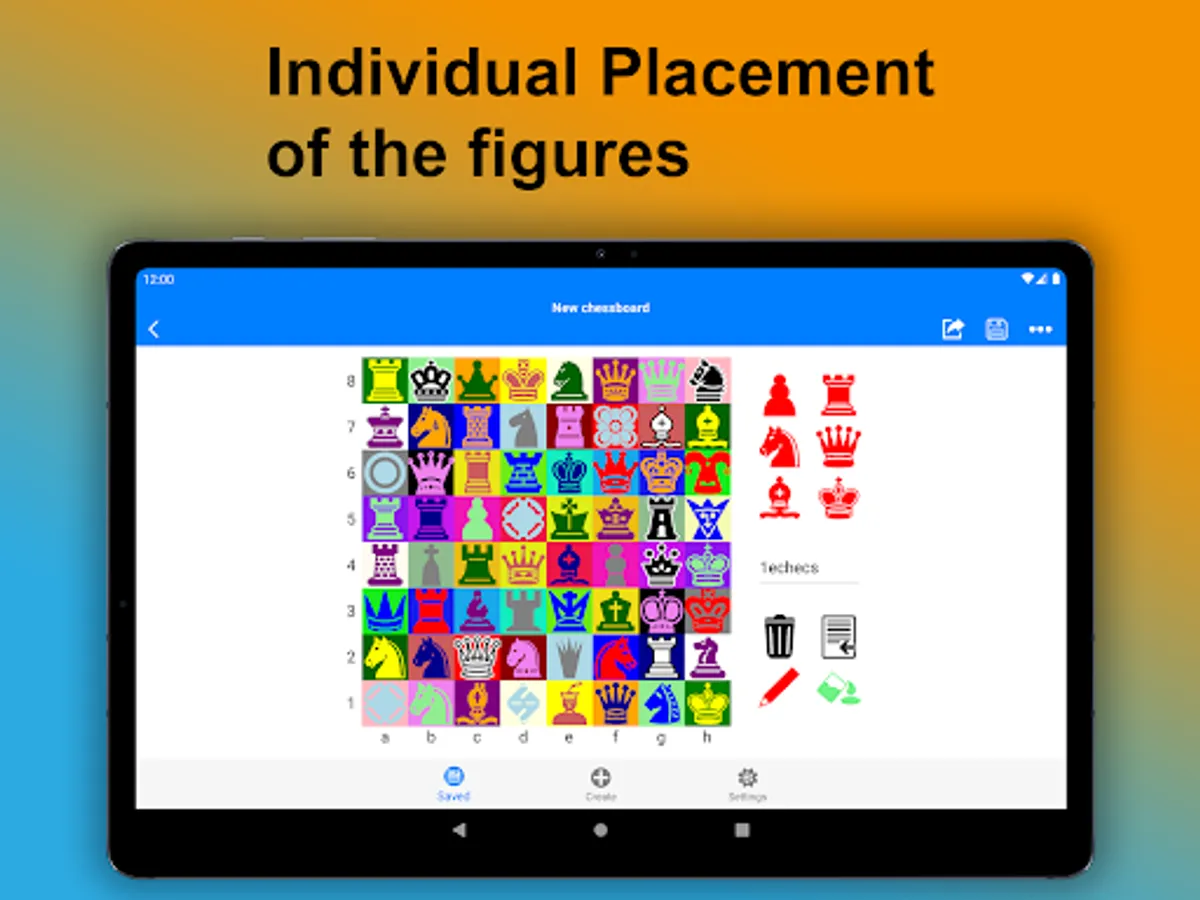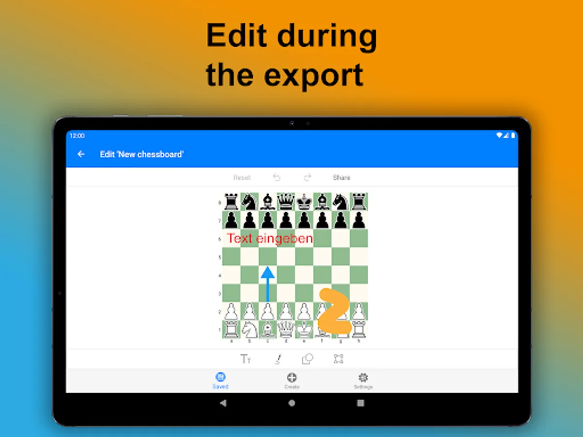 App for creation of chess diagrams of all kind. Create chess diagrams easily with your smartphone or tablet from everywhere. Using the menue you can insert the kind of figures, the field colours, symbols (arrows, geometrical forms), markings, texts and even pictures. All created chess diagrams will be safed in the APP. Anytime you will be able to work on safed files and add or delete data. Designing within the Chesspie App is unbelievable simple! The user interface is self-explaining and designed intuitively. It will allow you to create your first diagram very simple. All chess diagrams can be safed, printed or sent immediately in PNG or PDF format.