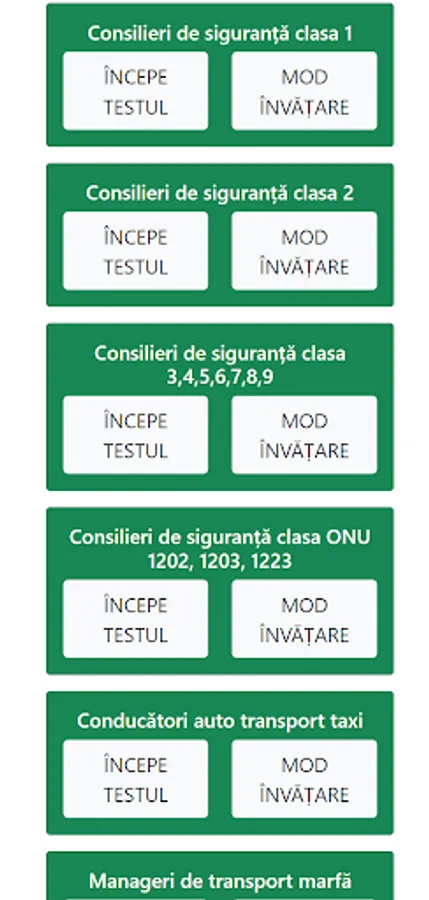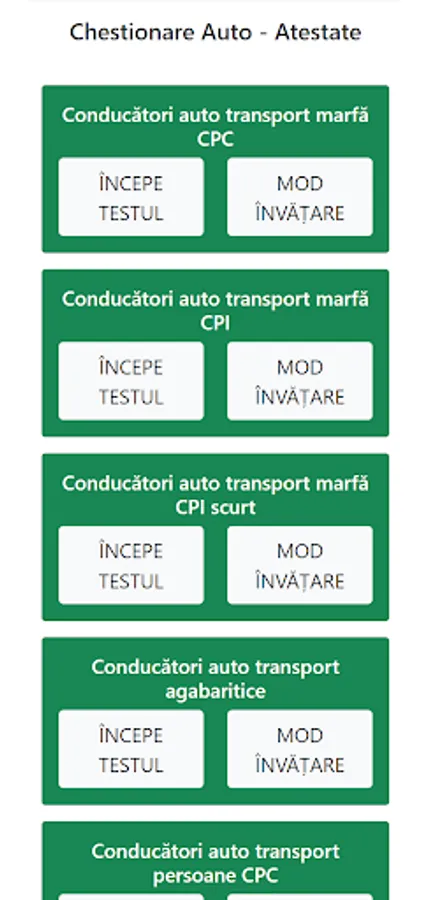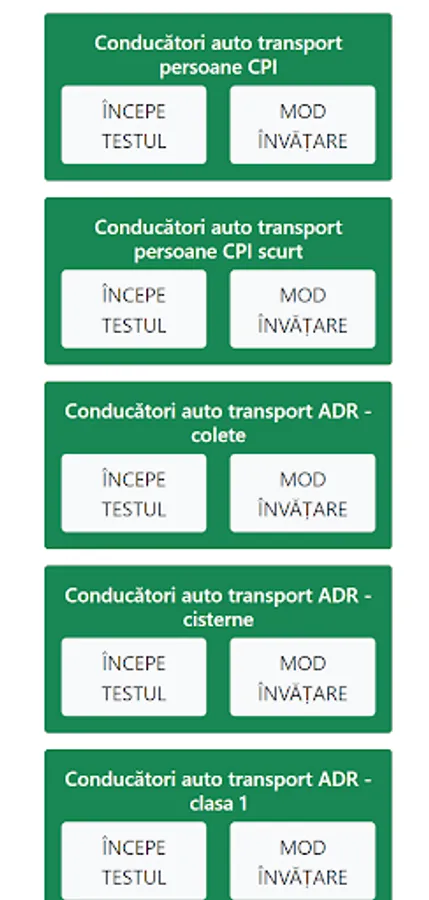 Exam simulation and learning environment for the subcategories: Social regulations, Transport regulations for managers, Technical regulations and conditions imposed on drivers, Contracts, accounting and marketing