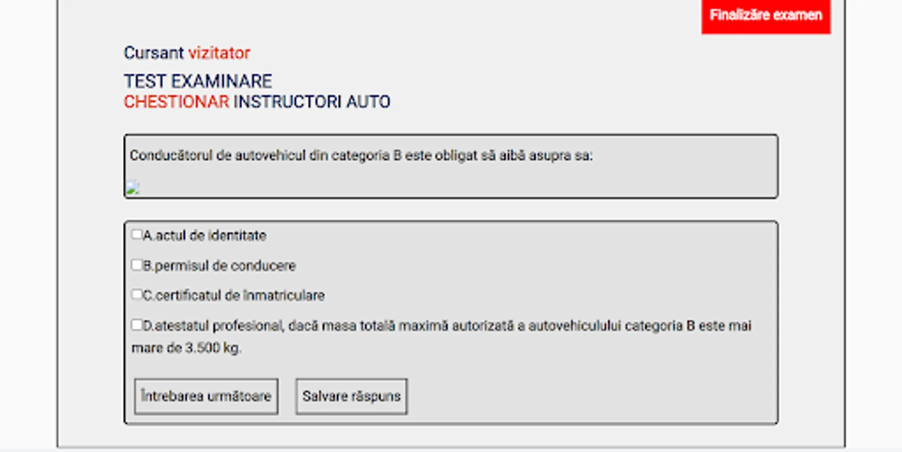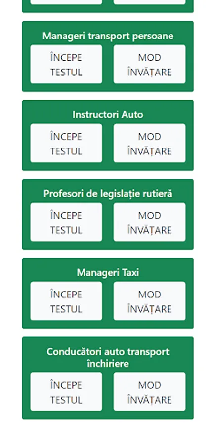 Exam simulation and learning environment for the subcategories: Traffic legislation, Preventive driving, Mechanics instructors and teachers, Pedagogy and methodology, Professional regulations