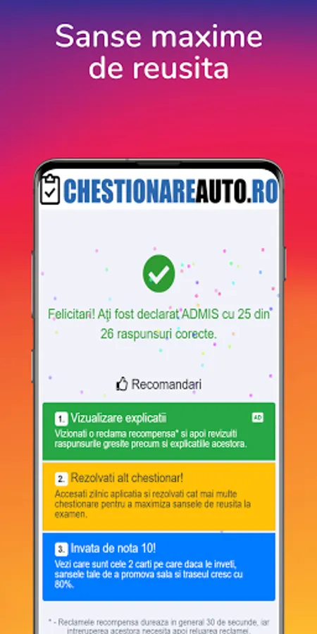 1. Car questionnaire 2023 for all categories: A, B, C, D, E and reacquisition. Here you will find the official, updated questions, and at the end of each questionnaire we will show you all the questions to which you got the answer wrong, as well as the clear, detailed, mouth-watering explanation, so that you can learn the logic behind the correct answer.