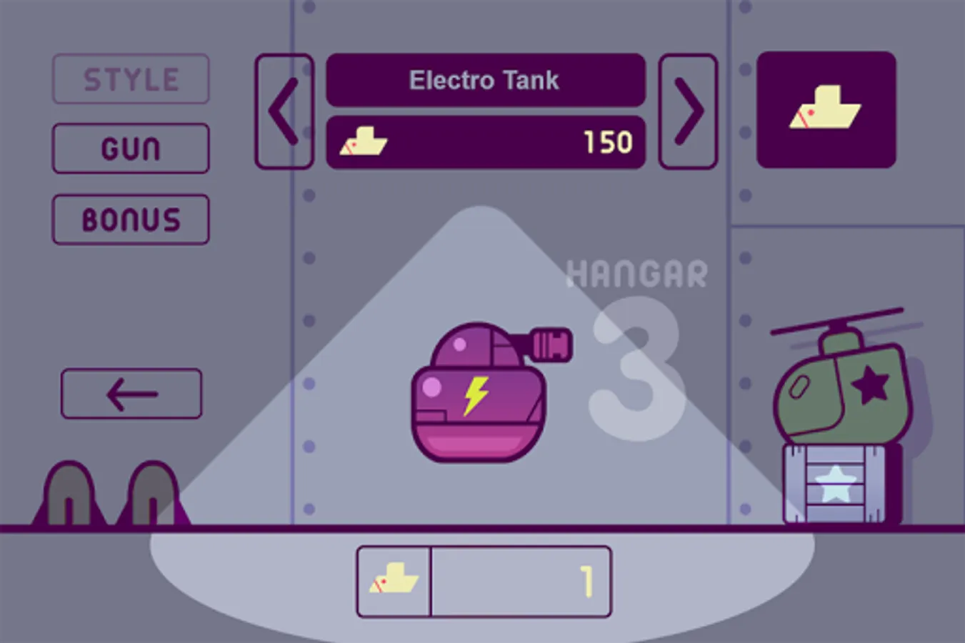 • Hangar where you can change your chewy tank style and upgrade it to improve your shooting skills !