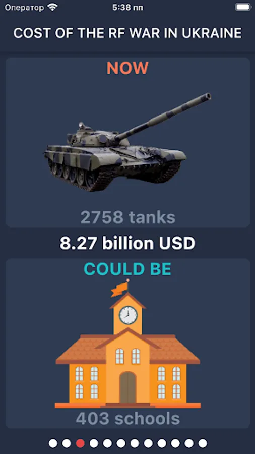 The application allows you to find out how much Russia spent on the war in Ukraine and what useful things it could do for its citizens with these funds. Costs are calculated starting February 24, 2022, based on open sources.