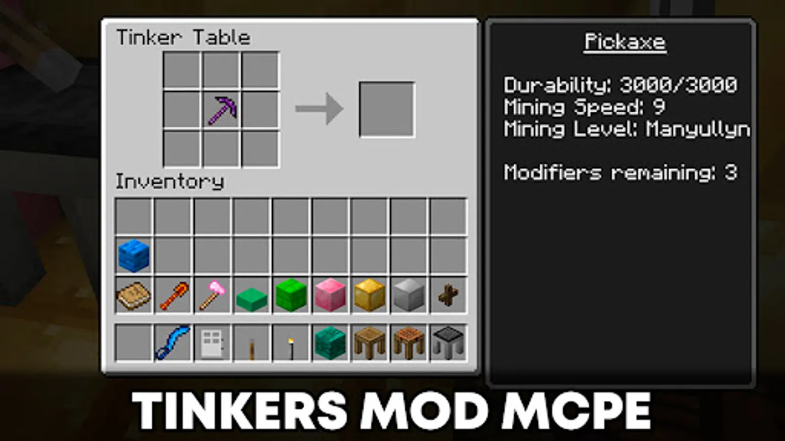 Tinkers Mod Minecraft is a mod that gives us the capacity to form custom devices in Tinkers Construct, with this mod we are able make custom armor pieces for our Minecraft character. With this mod installed we will be able to make picks, swords, tomahawks, protective caps, pants and breastplates of diverse materials.