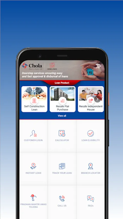 Chola offers doorstep services ensuring easy and fast approval and disbursal of loans. Loans for self-construction, home extension, purchase of ready property (new/resale) and transfer of existing loan are on offer. Through this app one can calculate the EMI, apply for a loan, track the status of the application and upon disbursement be served at the click of a button. One can also refer leads for Home Loans.