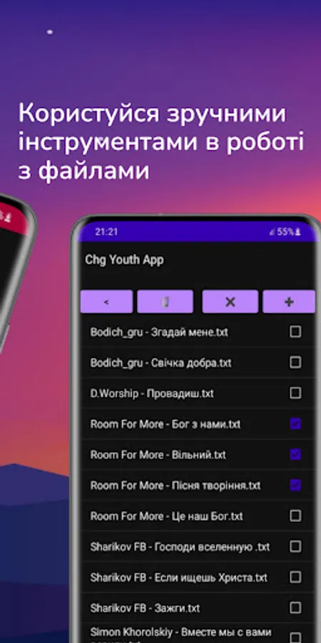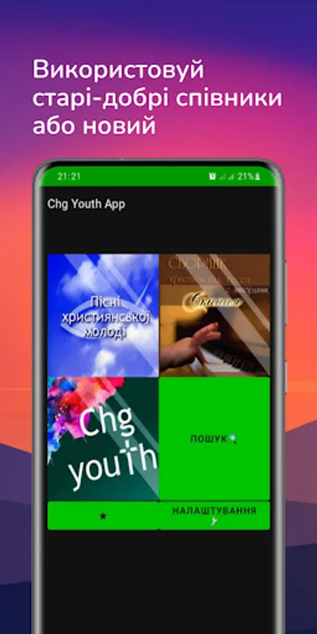 This application is a collection of hymns with Christian youth (and not so) songs.