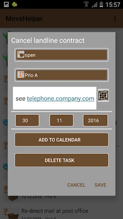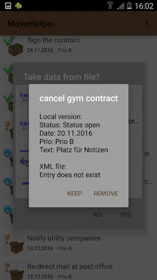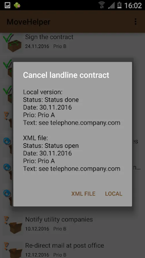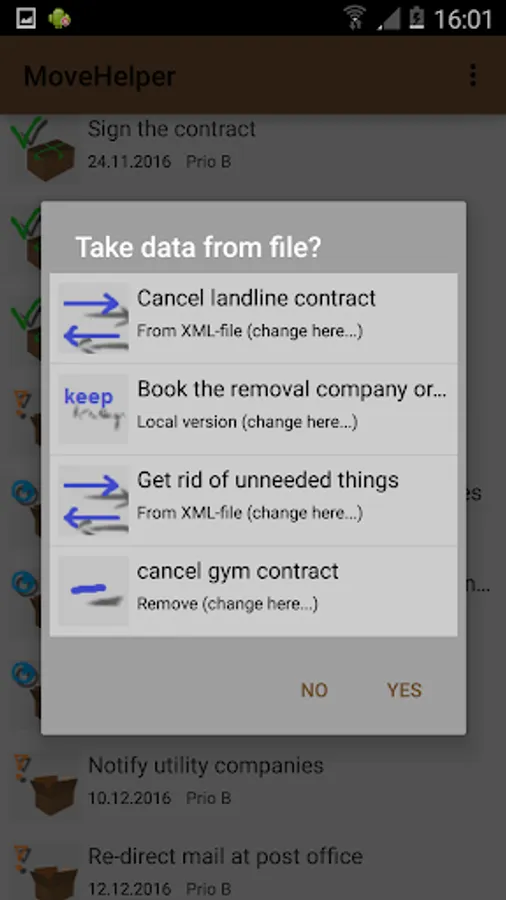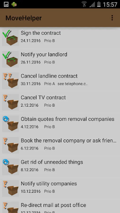 MoveHelper already provides an initial set of tasks. The list can be extended and tasks can be removed.