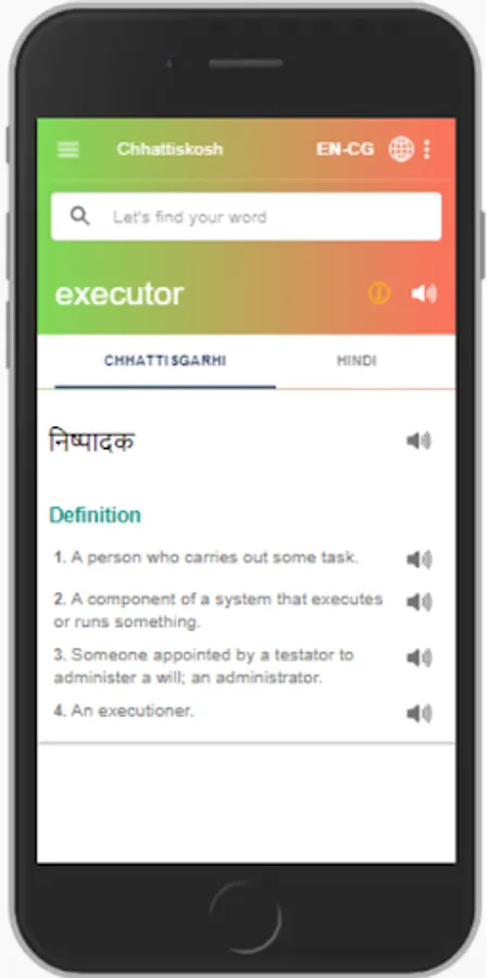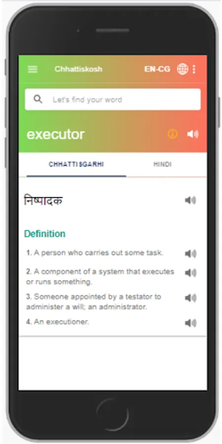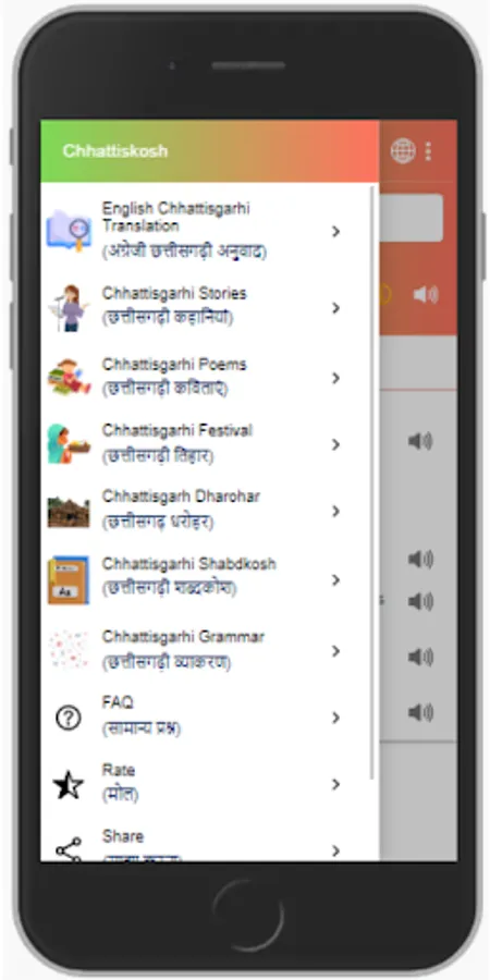 2. Using inbuilt speak functionality, you can listen to words or sentences. Click on speaker and app will read English words and Chhattisgarhi word.