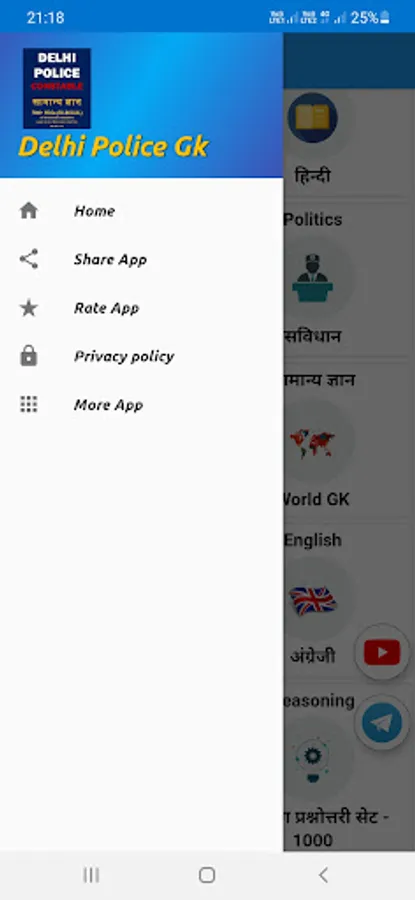 DELHI POLICE GK सामान्य ज्ञान को बढ़ाने का एक प्रयास है और यह विभिन्न विषयों से संबन्धित सामान्य ज्ञान के प्रश्नों का एक संग्रह है जो की सभी तरह के प्रतियोगिता परीक्षाओं जैसे SSC, IBPS Clerk, IBPS PO, RBI Assistant, IBPS SO, RRB, CTET, TET, BED, SCRA, UPSC और इसी तरह के कई अन्य प्रतियोगिता परीक्षाओं के लिए महत्वपूर्ण साबित हो सकता है ।