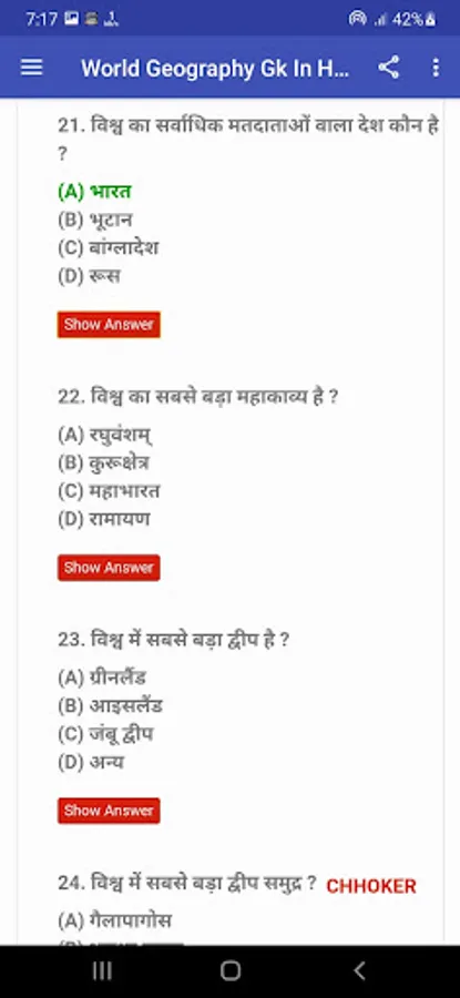 Indian and World Geography Objective For all competitive exam in Hindi contains 20000+ Geography Questions in Hindi for various competitions like UPSC, SSC, Bank PO, IBPS, Patwar Exam, B.ed and NET, SLET, TET, CTET and REET exam and State PSC exams. Bhugol GK quiz in Hindi