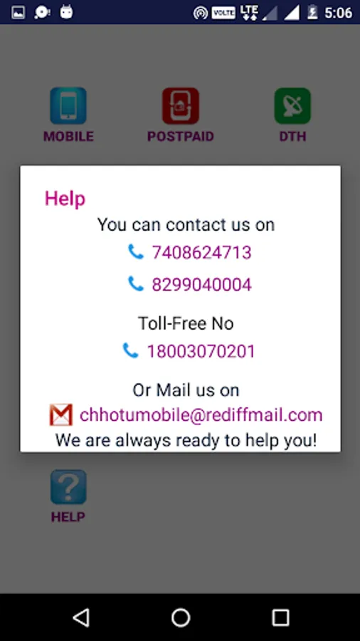 ChhotuRechargeApp is used for recharge for all types like Mobile, Datat card, DTH, Postpaid of operators like Airtel, Idea, BANL and so on.