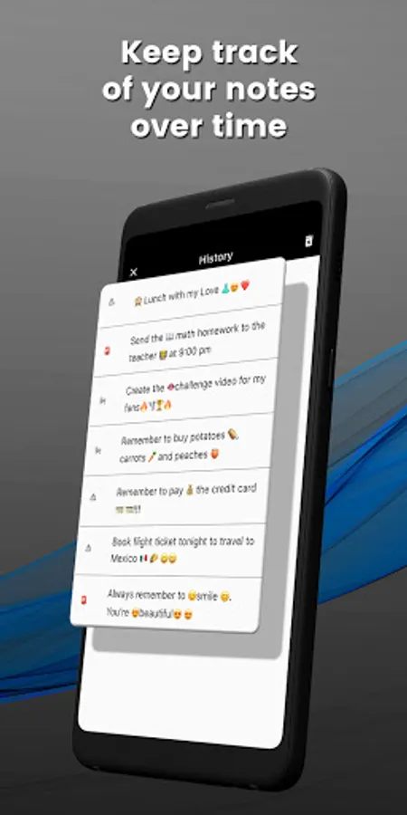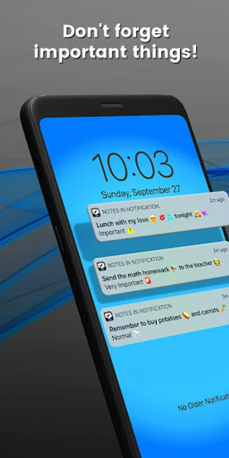 With Notes in Notification you will remember tasks, meetings, events. Use it to create habits, to jot down sudden ideas and whatever comes to your mind.