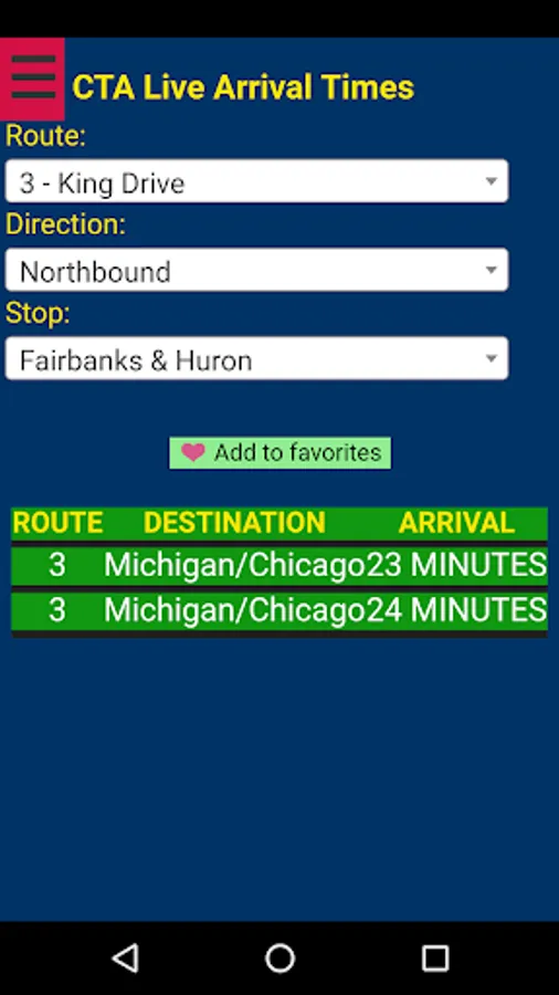 Live bus tracker for Chicago CTA buses. Simply select a route, direction and stop to see the next bus arrivals. Save your favorite stops to see upcoming arrivals with a single touch.
