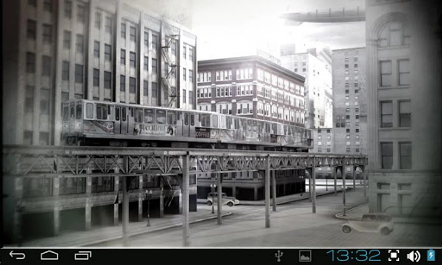 Great 3D retro style live wallpaper for your phone or tablet! Very detailed and colorful scenery of Chicago City with lot of traffic, roaming trains, zeppelins and original buildings make this wallpaper look like an old photo came alive. In FREE version only retro black and white scene available and only one camera view, so to enjoy all the features and support development,please, consider to check out PRO version.