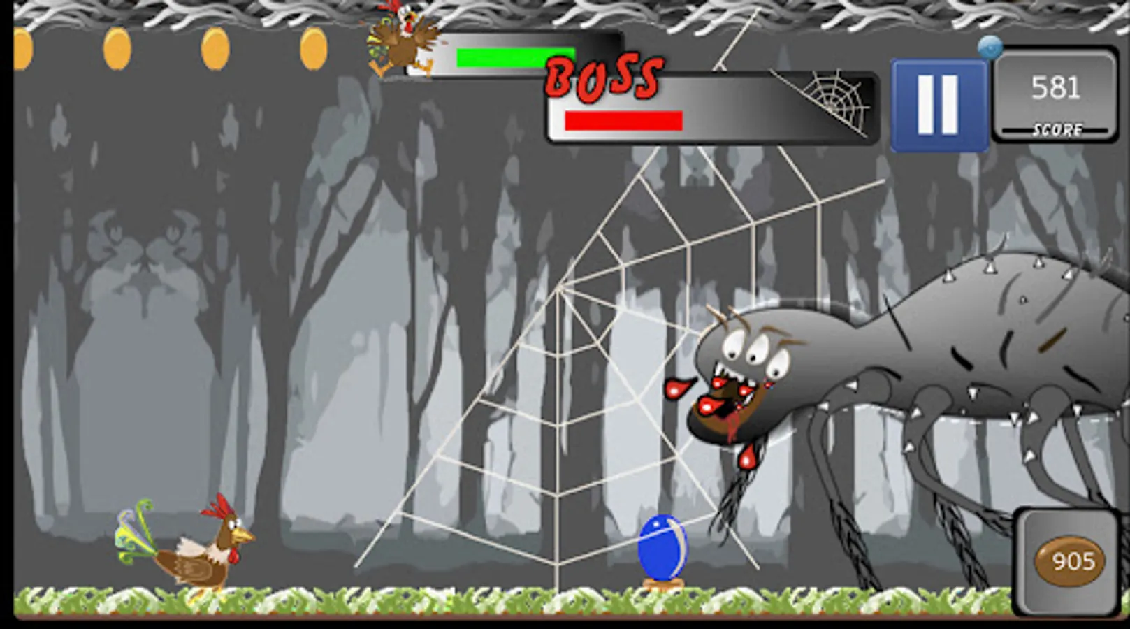 You are Chicken Flapper. Fight your way through the haunted forest, battling rabid bats, mummified birds, demons, scorpions, and giant spiders are just a few terrifying enemies to watch for. Battle your way to the end to defeat, defeating demonised bosses along the way!