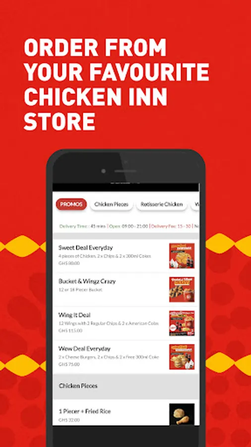 Download the app from the Play Store, choose your location and we'll present you with personalised location-based Chicken Inn restaurant offerings.