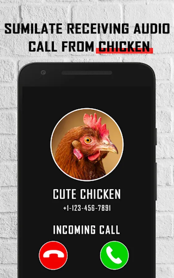 Notice: this application is a prank call. You will have a simulated incoming call from "CHICKEN".