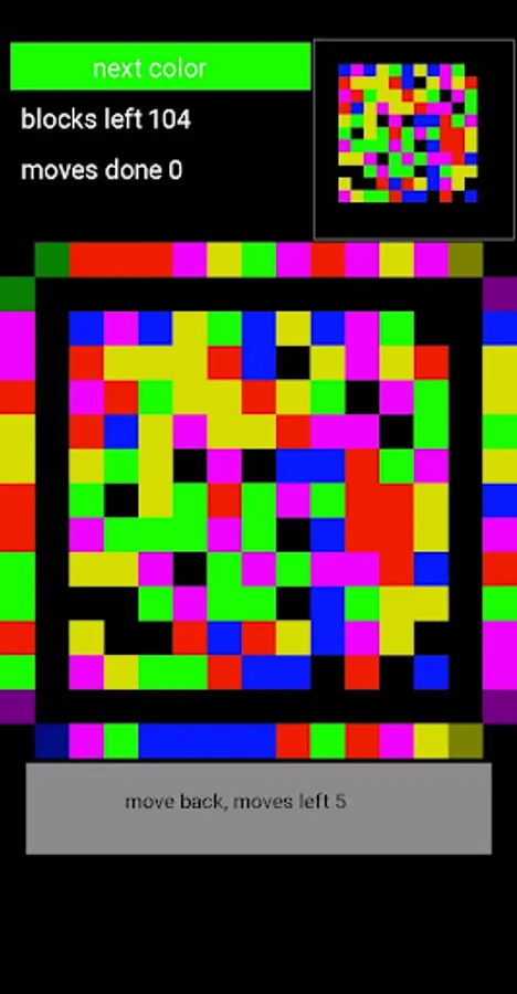 In this game you need to clear the field by collecting squares of the same color together using the squares located at the edges of the playing field.