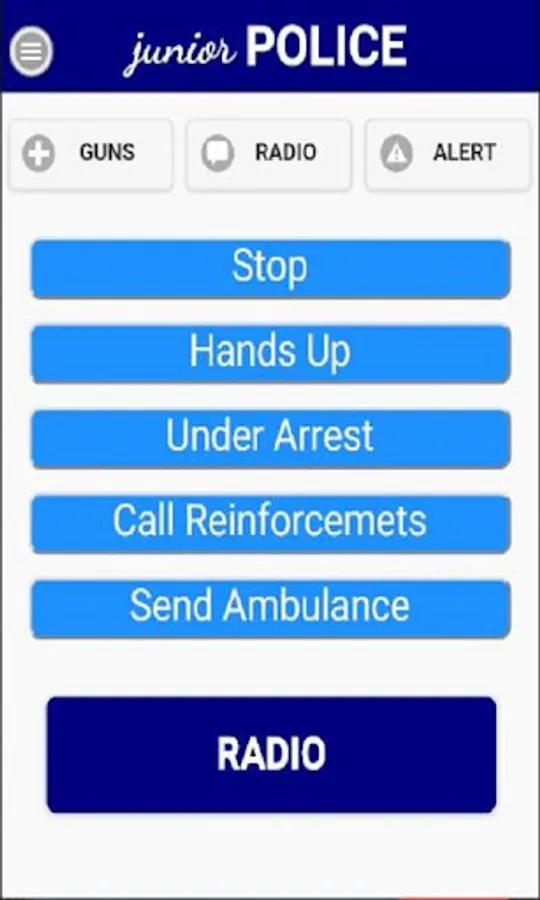 Bienvenido a Chico Policía. Esta aplicación usa sonidos e imagines para que sus niños se divertían jugando a ser Policías.